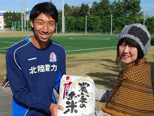 吉川拓也選手には、さらにMVPとして新米を贈りました。