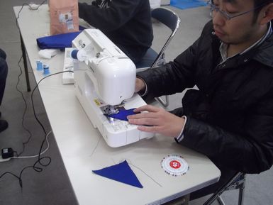 ミシンで縫うときも、共同作業です