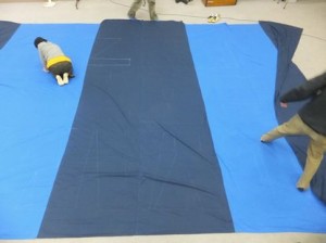 ◆まずは、ベースとなる布(青と紺のストライプ)を作成します。