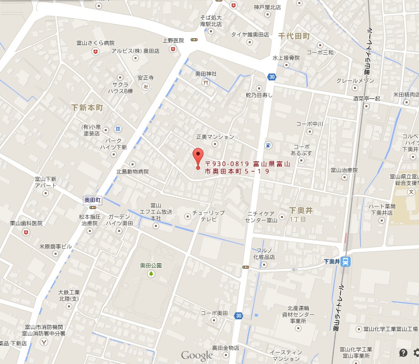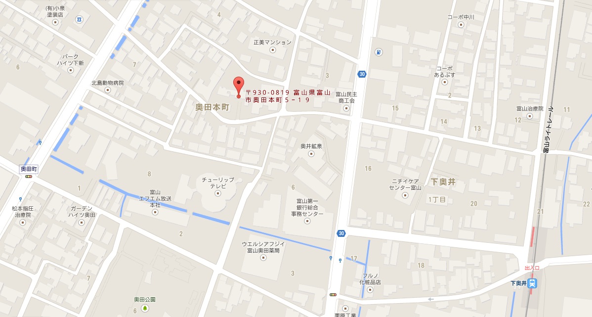 最寄り駅は、富山ライトレール下奥井駅となります。