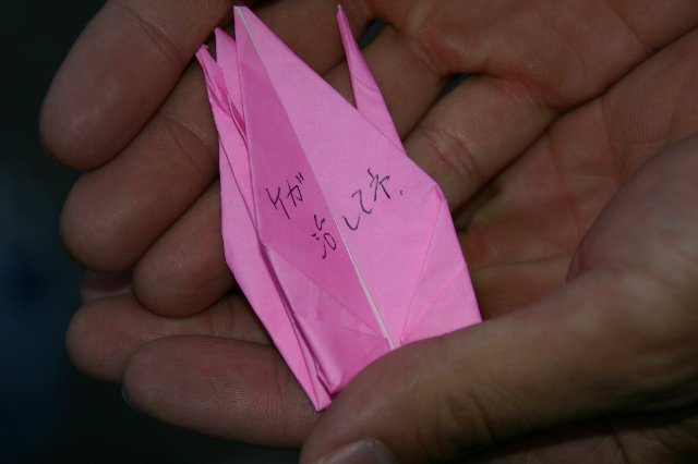 なお、千羽鶴の状態でお預かりした物については、当日試合後にチーム関係者へお渡ししました。
