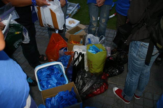 会場でお預かりした他の折り鶴は、会員で手分けして千羽鶴にし、6月21日(日)のホーム ヴァンフォーレ甲府戦の際にチーム関係者へ渡す予定です。